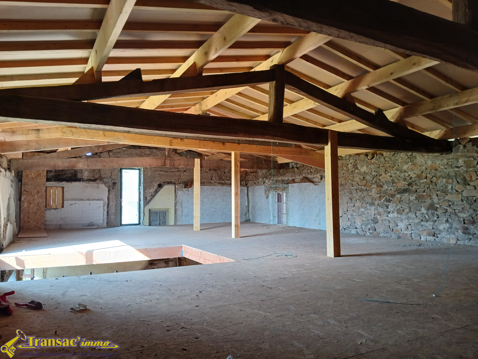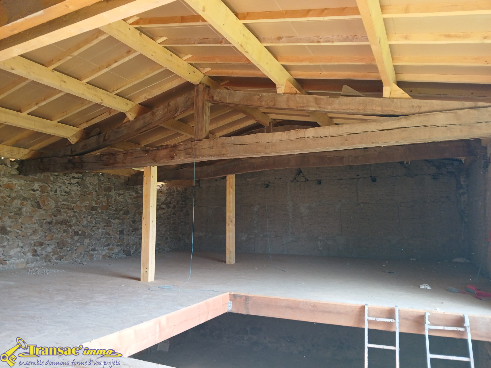 La charpente récente vous garantit une base saine pour vos travaux.